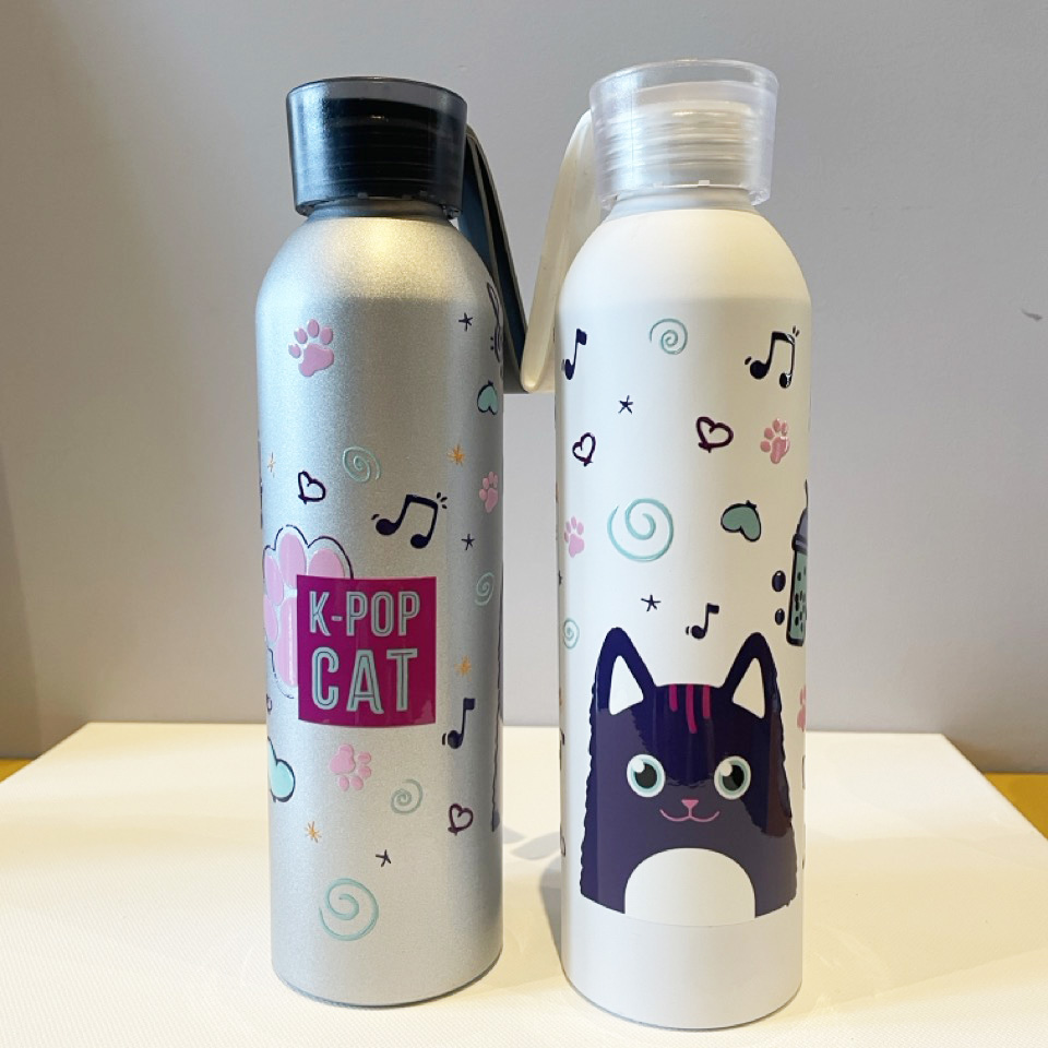 Cette gourde Chat Lisa la fan de K-pop s’invite dans notre quotidien en deux formats : petit format en 400ml elle est idéale à glisser dans un petit sac de tous les jours, dans un cartable ou en vadrouille si on veut rester léger. Grand format en 660ml pour les longues journées ou pour le sport. En matière aluminium, elle reste légère à transporter.