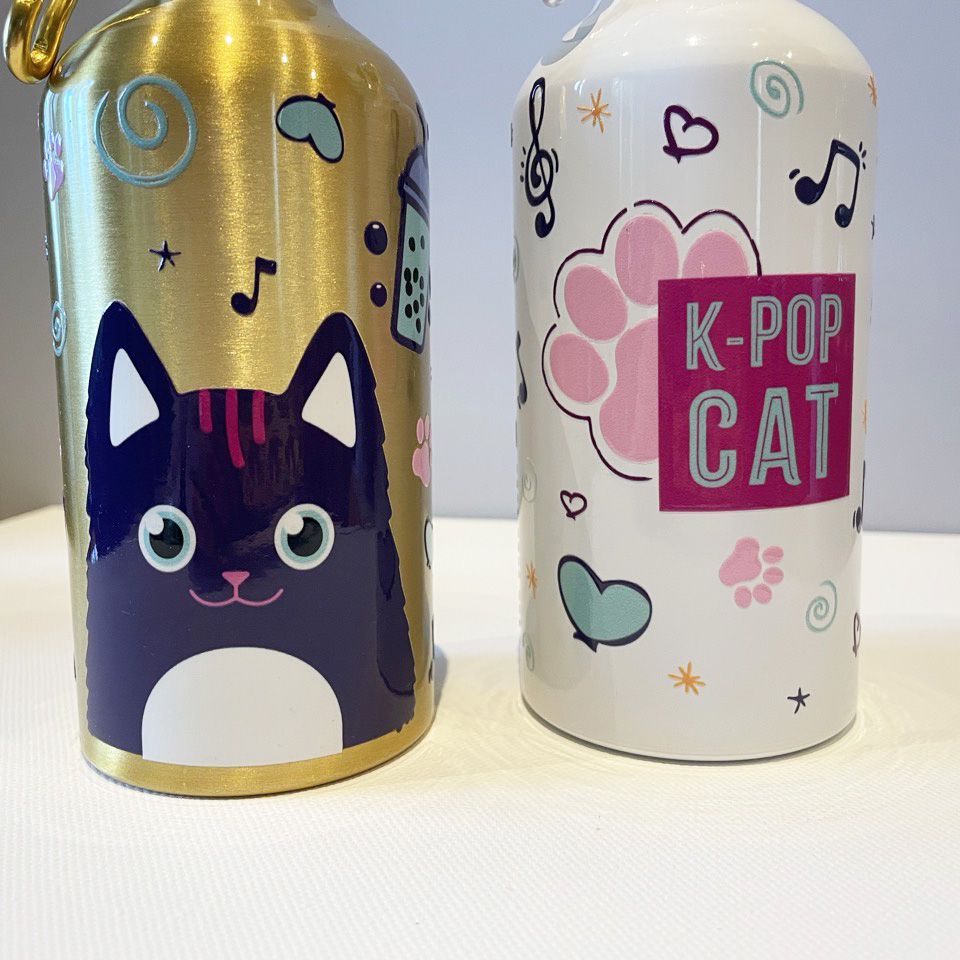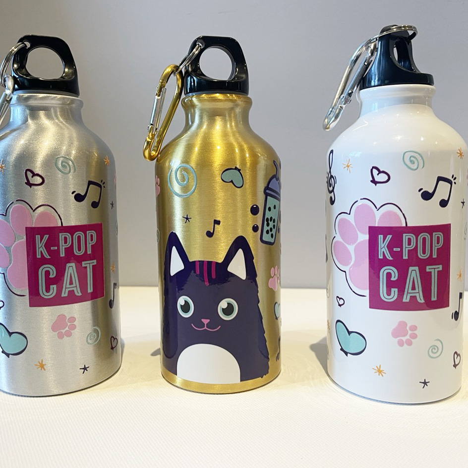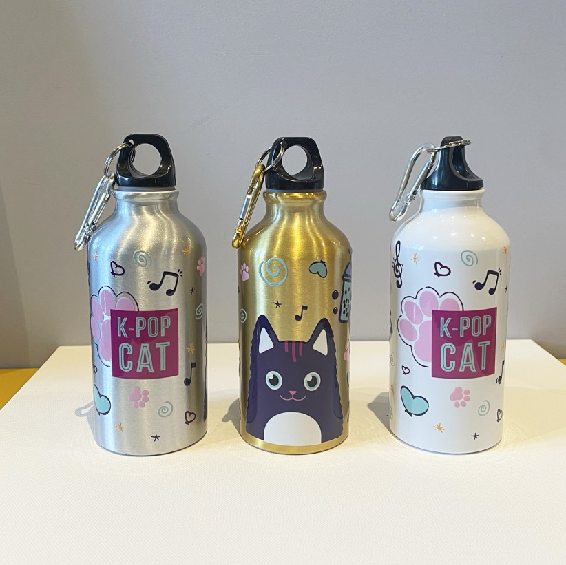 Cette gourde Chat Lisa la fan de K-Pop s’invite dans notre quotidien en deux formats : petit format en 400ml elle est idéale à glisser dans un petit sac de tous les jours, dans un cartable ou en vadrouille si on veut rester léger. Grand format en 660ml pour les longues journées ou pour le sport. En matière aluminium, elle reste légère à transporter.